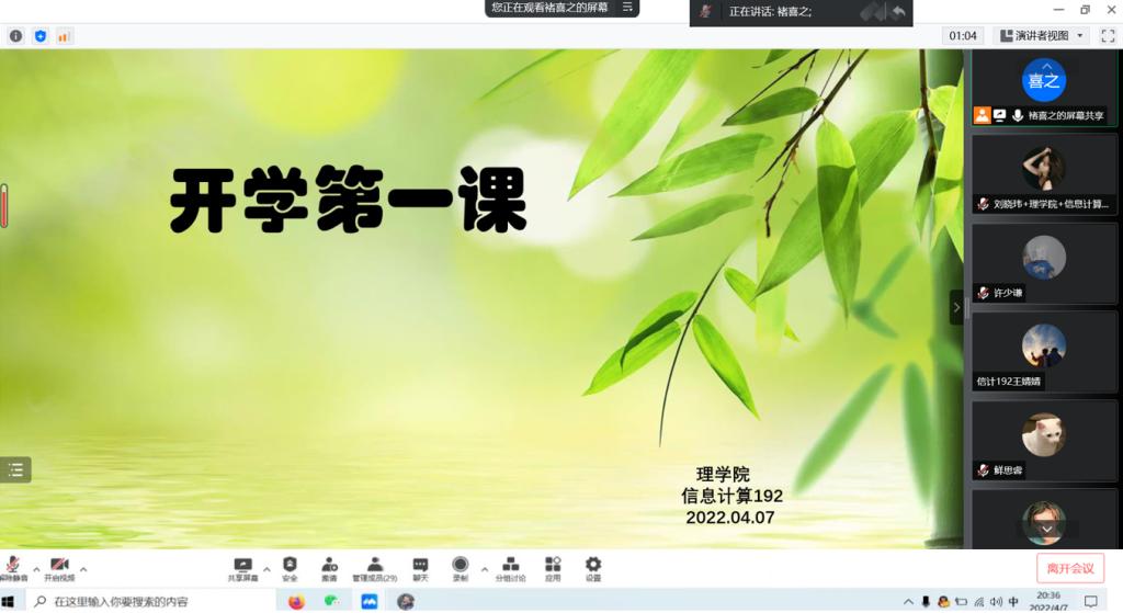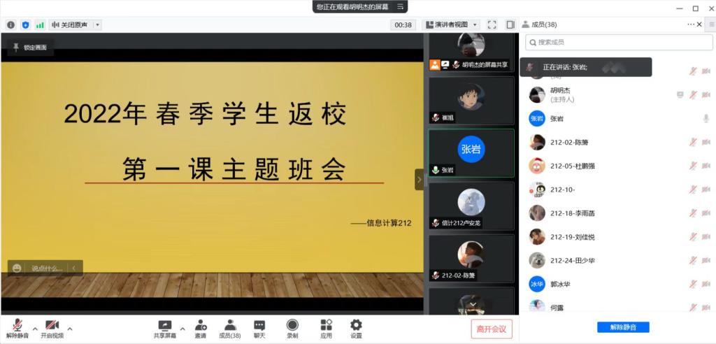 班主任随后解读了《高等学校新冠肺炎疫情防控技术方案(第四版)》,介绍了做好疫情防控工作的要求和方式方法。宣讲了在疫情防控中表现优异学生的先进事迹,鼓励同学们积极参与志愿服务工作,弘扬正能量,展现青年一代的担当。同时,从纪律、学习、安全三方面进行强调,希望同学们能尽快调整状态,全身心投入学习中,遵守课堂纪律,谨防网络诈骗,建立新学期的新目标,努力地向着目标前进。并要求同学们扎实开展爱国卫生实践活动,维护宿舍用电安全,营造干净舒适的宿舍环境。