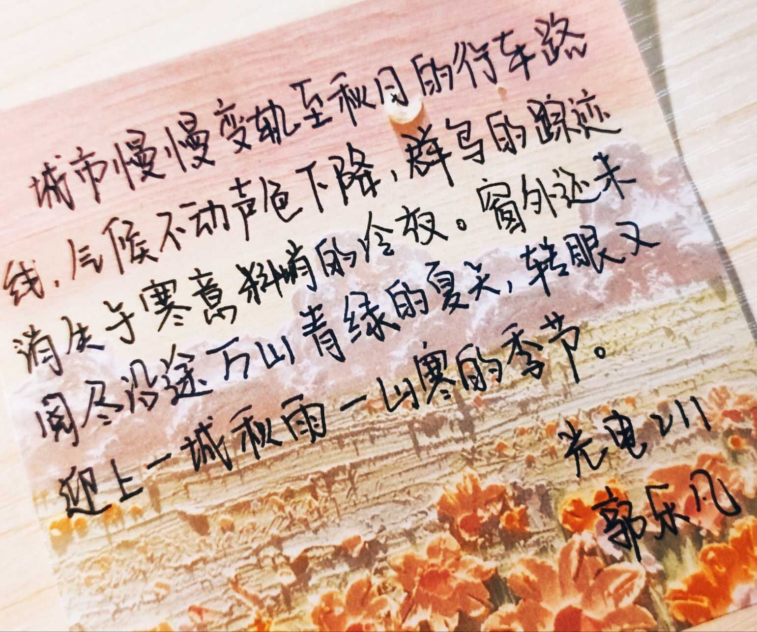 趁着日丽风和,在活动开展期间,同学们轻轻拿起笔,写下一直藏匿于自己心中的一段话,让它翩然落于秋叶之上,成为这个秋天最美的诗歌。信息计算222班的李卓颖同学写到,“只道诗酒趁秋风,寄珍重,长渡千山”,在分享过程中,同学们纷纷发言,表达自己的秋思,挥洒或豪迈或感怀的才情,表现出优秀的文化素养,更让我们体会到秋天的魅力、文字的美丽、西航的魅力。