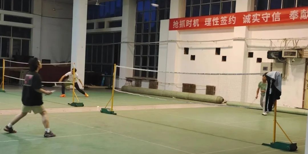 为了增强羽毛球队同学们的身体素质及羽毛球基本功,营造队内积极向上的运动氛围,提高团队凝聚力和团结意识。4月16日晚自习羽毛球队于羽毛球馆进行队内训练。