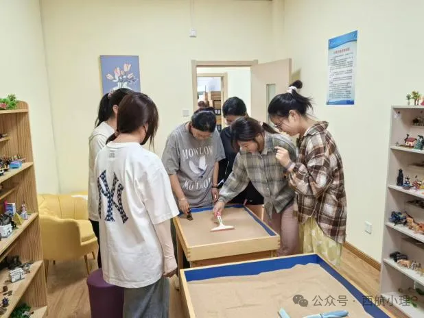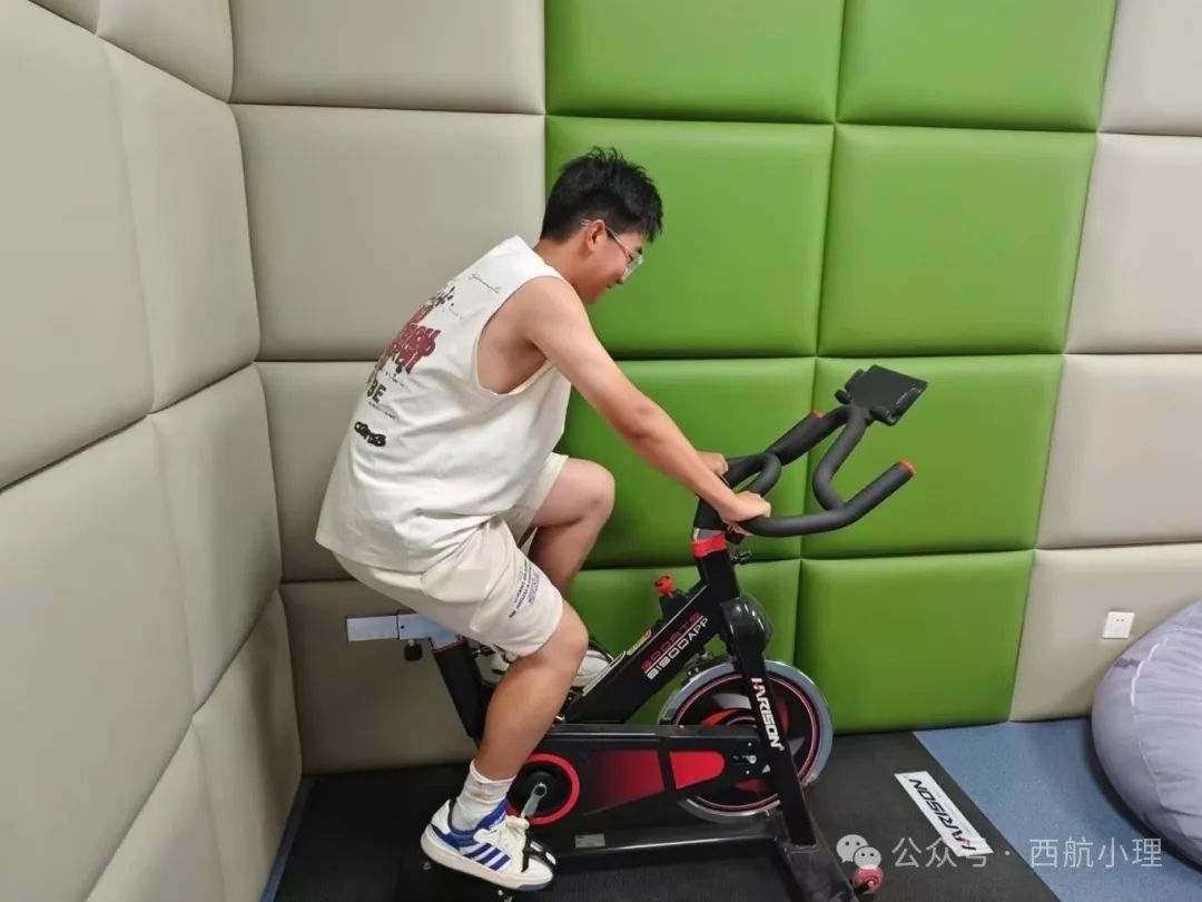 在讲解员的指引下,新生们依次参观了值班室、情绪宣泄室、沙盘游戏室以及团体辅导室,了解到了各种沙盘模具、放松和宣泄仪器。讲解员通过实时讲解、问答等形式,向同学们普及了心理健康知识,引导大家正确认识和对待自己的心理状况,并向同学们介绍了个体心理咨询、团体心理辅导、心理评测等心理健康资源的预约和使用方法。