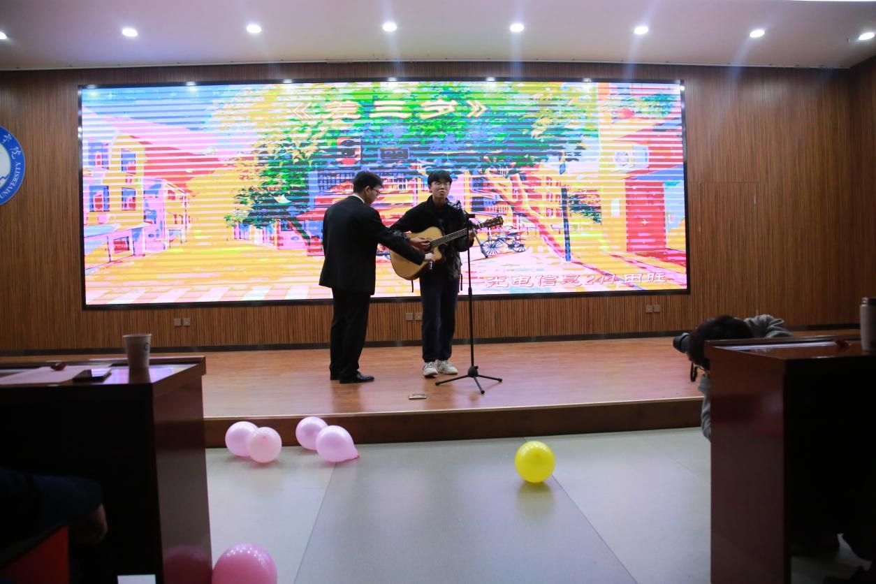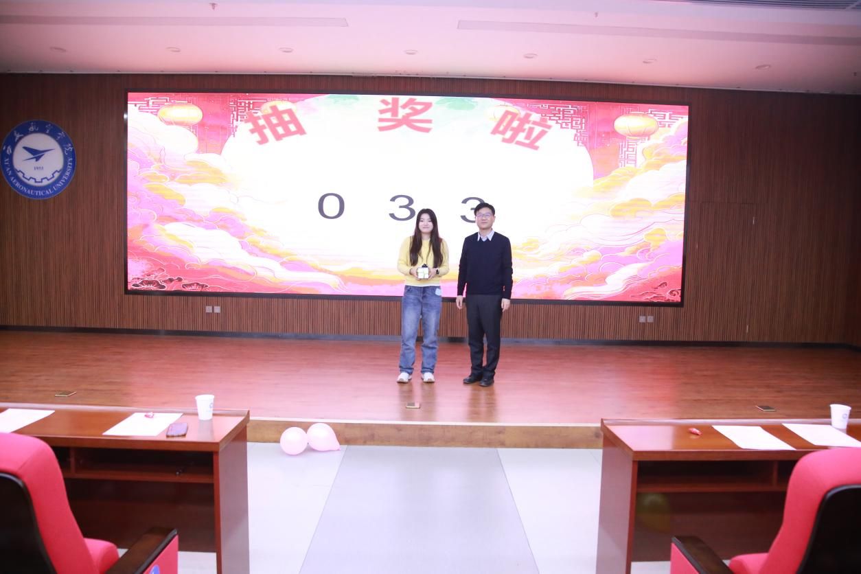 中场休息时,主持人和同学们进行了“趣味问答”小游戏,同学们都积极参与,踊跃回答问题,回答正确的同学均获得一份精美的小礼品,党总支书记胡红亮和院长李小光分别为获奖同学颁奖。