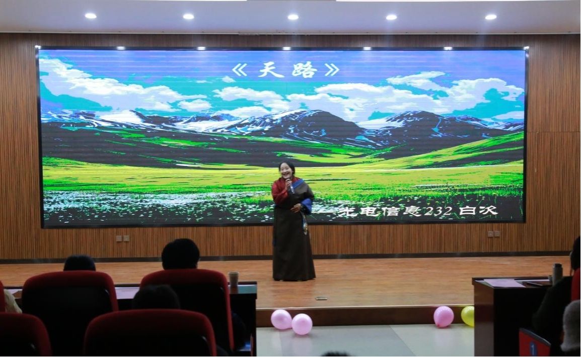 藏族舞蹈《相会》,将民族特色展现得淋漓尽致。同学们身着鲜艳的民族服饰,用优美的舞姿诠释了藏族文化的独特魅力,让观众仿佛置身于神秘的青藏高原。