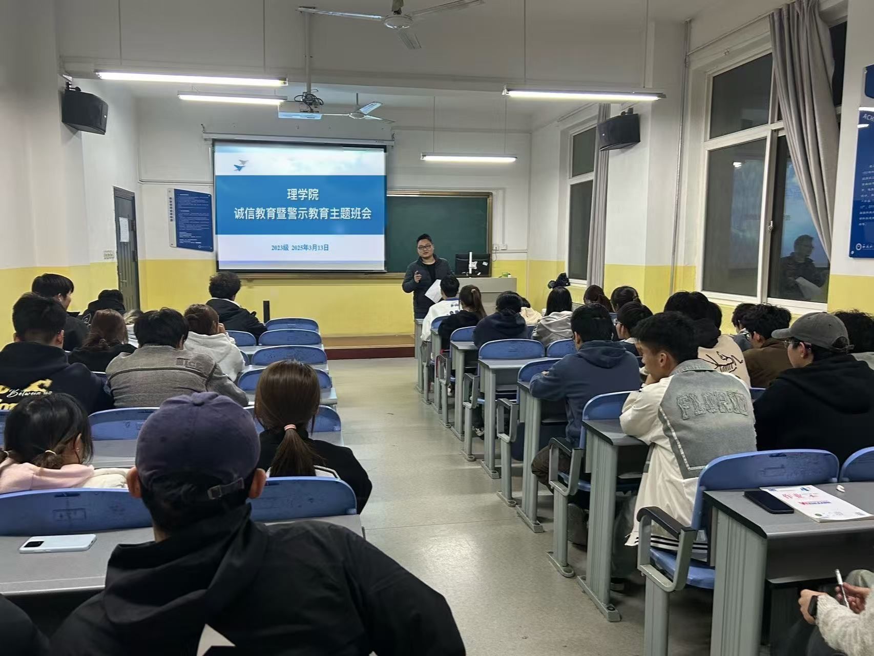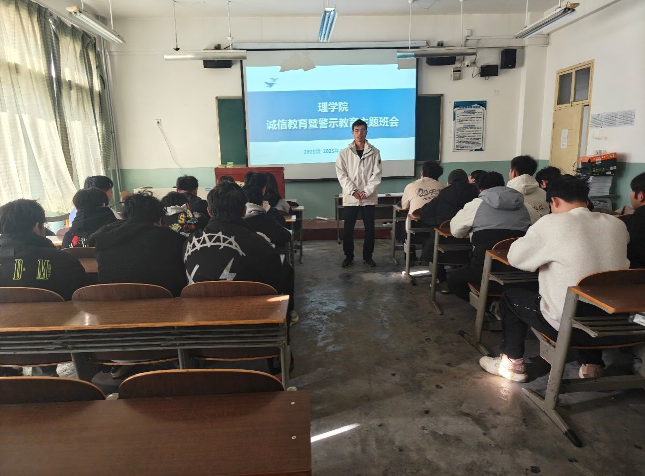 会上,班委结合《普通高等学校学生管理规定》《西安航空学院学生考试违规处理办法》,领学了考试纪律要求,辅导员强调诚信考试是学生的基本行为准则,也是学术道德的底线。诚信是立身之本,学术不端行为损害的不仅是个人信誉,更是对教育公平的践踏。希望同学们以诚信为荣,以作弊为耻,用真才实学赢得未来。随后通过剖析近年来校内外发生的考试作弊典型案例,警示学生:考试作弊不仅面临取消成绩、记过甚至开除学籍的纪律处分,更可能因触犯法律承担刑事责任,对个人前途造成不可逆的影响。主题班会以案为鉴,敲响诚信警钟。