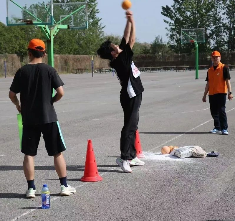 背抛实心球区域,选手们双脚站稳,双手举球过顶,瞬间发力后仰,实心球划出优美弧线飞向远方。taptap点点同学不断调整姿势,在一次次尝试中挑战更远距离。