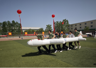 趣味运动会的师生跳大绳现场,摇绳者默契甩动长绳,参赛师生鱼贯而入,轻盈跳跃。老师们一改严肃,和学生们配合无间,偶尔绊绳也不气馁,欢声笑语中,师生同频跳动的身影,成为春日校园最温暖的风景。