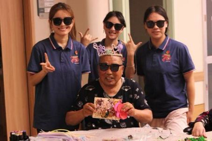 活动现场温馨而有序。实践队员们提前精心布置场地,备齐了玫瑰、雏菊、满天星等各色干花材料以及相框、胶水、剪刀等制作工具。活动伊始,志愿者们采取“一对一”或“多对一”的形式,耐心细致地为长者们讲解干花相框的制作步骤与技巧。从挑选形态优美的花朵枝叶,到构思布局、修剪搭配,再到细心粘贴固定、完成装裱,每一个环节都伴随着志愿者的手把手指导和生动演示。长者们兴致盎然,专注聆听,不时提出疑问,与志愿者们亲切交流,现场洋溢着轻松融洽、其乐融融的氛围。