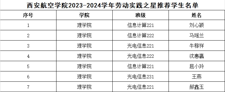 按照《关于开展2023-2024学年学生集体奖及个人奖评比的通知》(西航学字〔2024〕30号)文件相关规定及点点实际情况,经评选推荐,现将点点2023-2024学年学生集体奖及个人奖获奖学生名单公示如下: