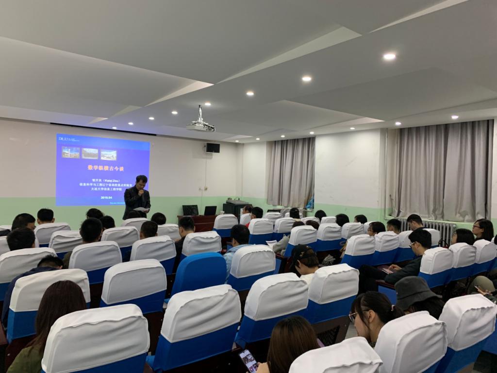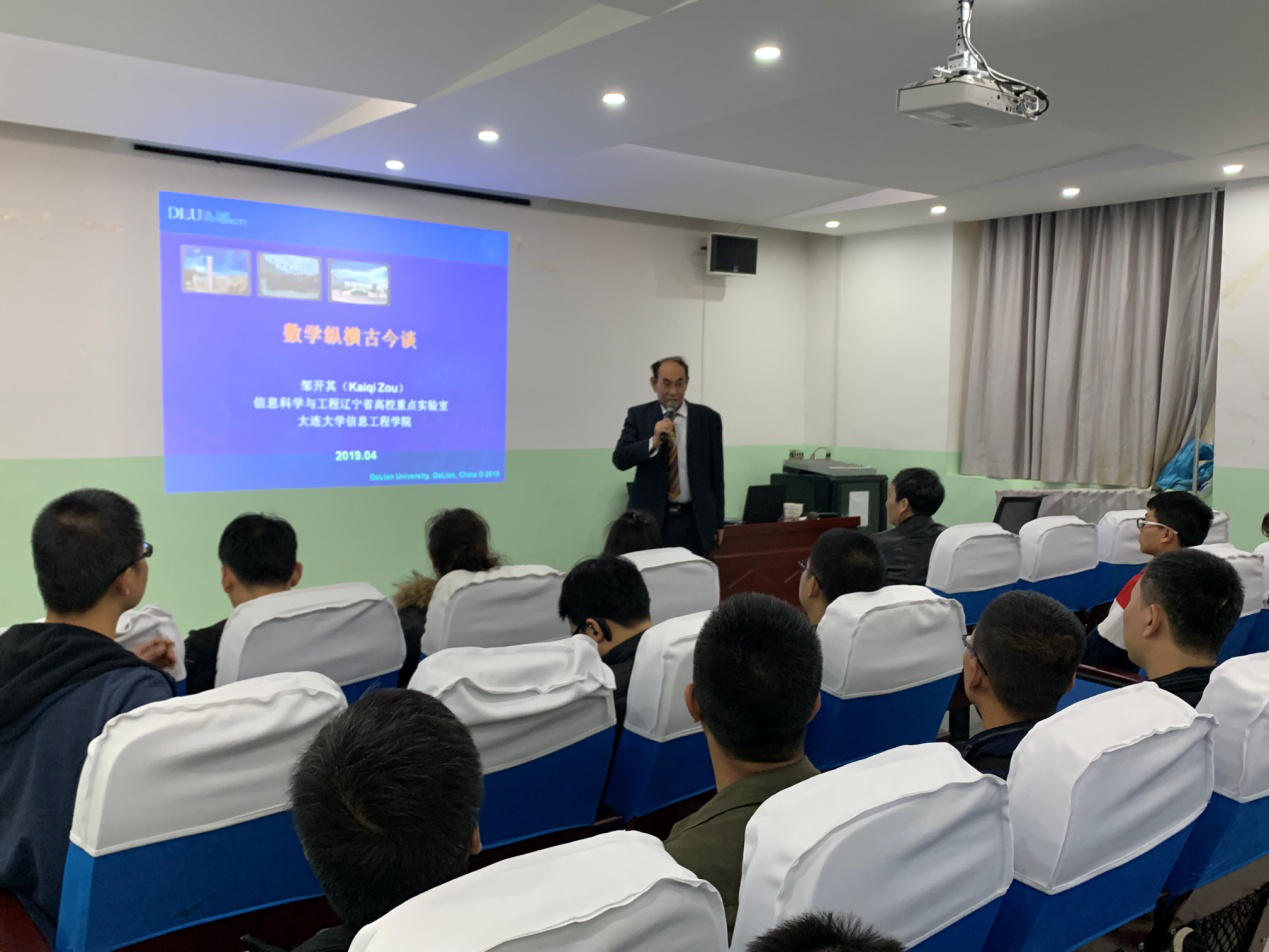 2019年4月12日下午2:30,taptap点点邀请大连大学学术梯队带头人、大连大学应用数学研究所所长邹开其教授在教学南楼108做了题为“数学纵横古今谈”的学术讲座。讲座由taptap点点院长岳忠玉主持,近百名师生参加。