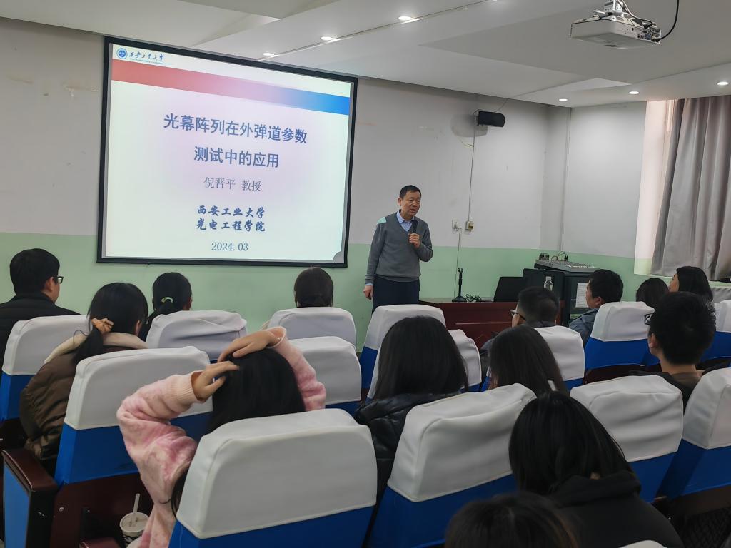 李小光对倪晋平教授的基本情况及教学科研情况做了简要介绍,并对倪教授的到来表示热烈的欢迎。倪晋平教授介绍了西安工业大学的军工背景,并结合团队科研成果从外弹道测试需求、光幕探测原理及分类、光谱测量技术的应用、弹丸信号识别技术及待解决的基本问题对光幕阵列在外弹道参数测试方面的研究做了详细的讲座。
