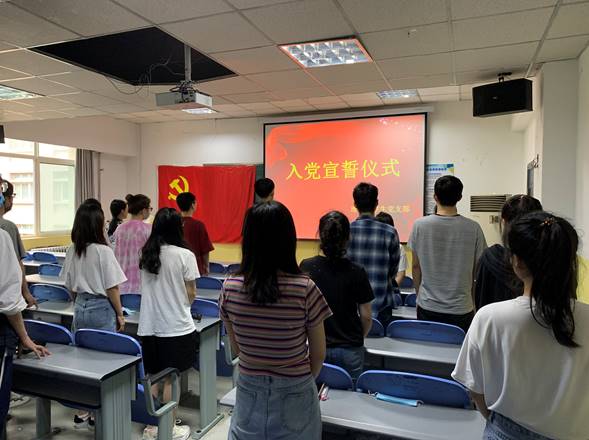 taptap点点学生党支部于2020年7月1日在教学南楼408进行新入党党员宣誓仪式。宣誓仪式由学生党支部书记李扬主持,参加人员学生党支部全部成员,宣誓人员为王哲、杨滨瑞、张璟明、姜悦、南凯悦、翟同悦、郭鹏德、马辰璐、杨静、曹盼盼、杨帆、赵鑫、伍袁弘、刘瑱疆、陈延峰、车雨娟、黄诚英、李轶、苗旭东十九名同志。