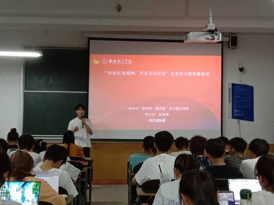 2021年6月8日,taptap点点于南楼307教室举办了“传承红色精神,共话百年征程”党史学习微宣讲,此次宣讲会由杨洁主持,taptap点点全体大一学生参加。
