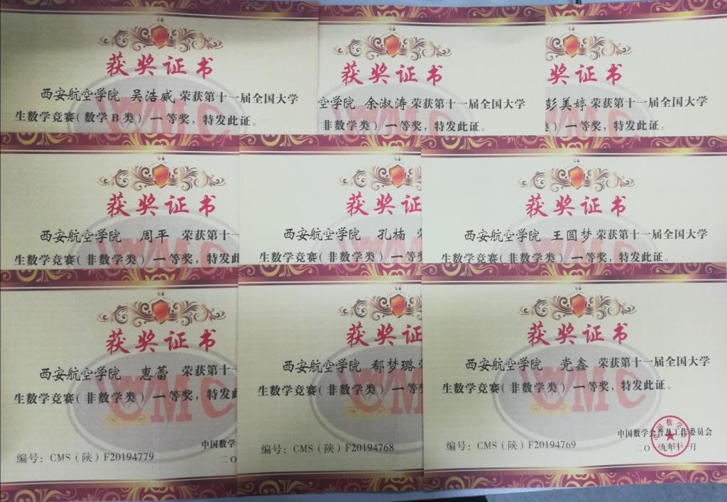 2019年第十一届全国大学生数学竞赛成绩揭晓,点点共获82项奖项,其中陕西省一等奖17项、二等奖30项、三等奖35项,其中数学类获省级一等奖1项,省级二等奖1项,省级三等奖3项,本次竞赛是点点第四次参赛,也是历年来参加人数和获奖人数最多的一次。