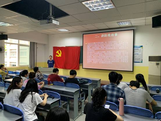 李老师主要讲了在疫情防控阶段支部陈延峰、王佳敏、刘逸轩、杨旺旺4名同志在家乡协助基层工作人员战疫的情况,鼓励大家从一点一滴做起,不怕苦难,为人民服务。