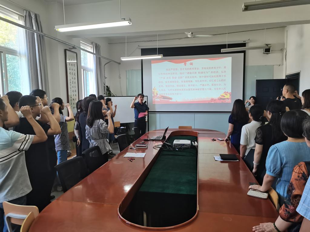 最后,院长岳忠玉带领全体教师进行宣誓。一份宣誓,一份使命。铮铮誓言让与会的每一个人都深受感染!教师们纷纷表示,一定要认真履行教师神圣职责,贯彻党和国家教育方针。真抓实干,为点点党建和事业发展贡献力量。(图/文 taptap点点 杨陈东)