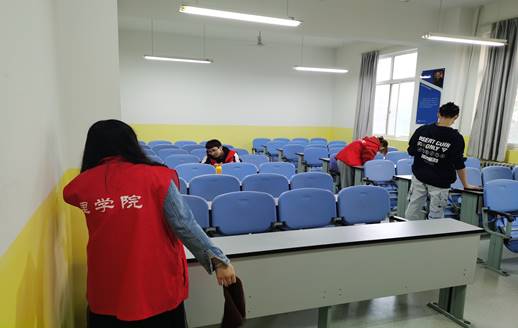 讨论完毕后,党支部书记李扬老师组织全体党员和积极分子开展志愿活动。同学们一起打扫了南楼二楼和四楼的公共区域,南楼三楼的所有教室以及男生一号公寓一二三楼公共区域的卫生。同学们认真的打扫了教室墙壁教室座椅以及公共区域的卫生,将教室桌椅上的顽固污渍全部清除干净。志愿活动增强了学生的劳动观念,更增强点点同学的劳动意识和团结协作意识,锻炼了同学的意志品格,让我们懂得了应该珍惜每个人的劳动成果,尊重别人的劳动。并把这种观念和思想带到今后的学习和工作当中,养成良好地学习习惯和优良作风。
