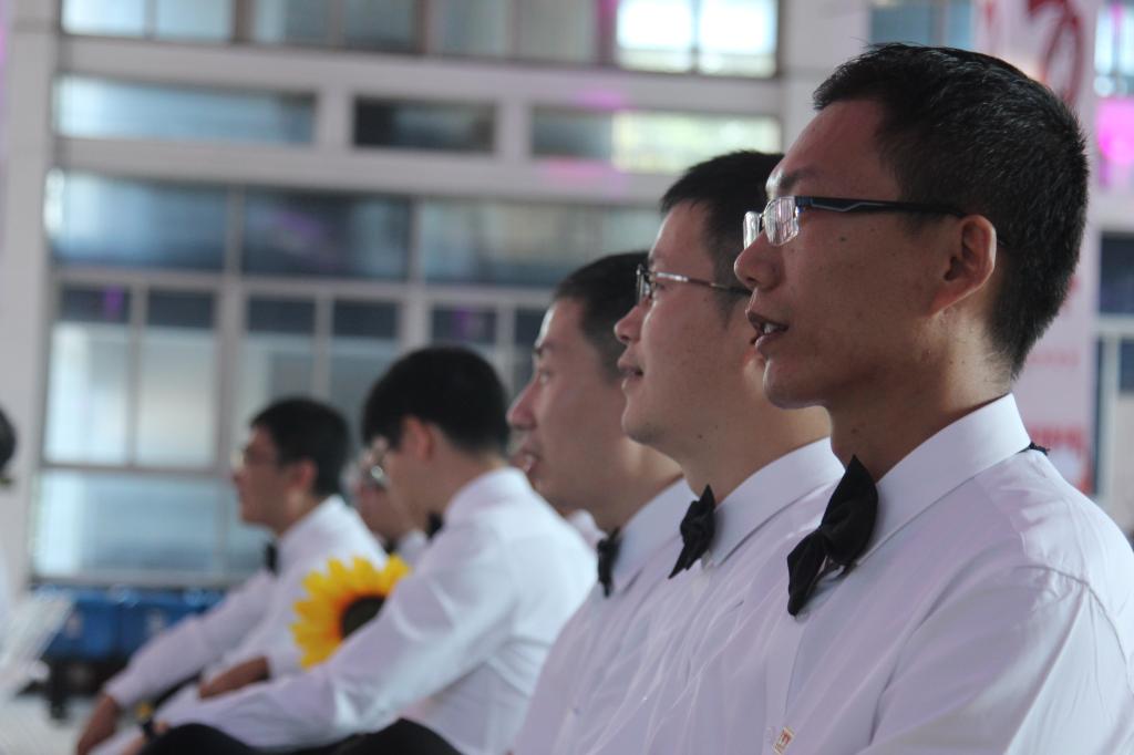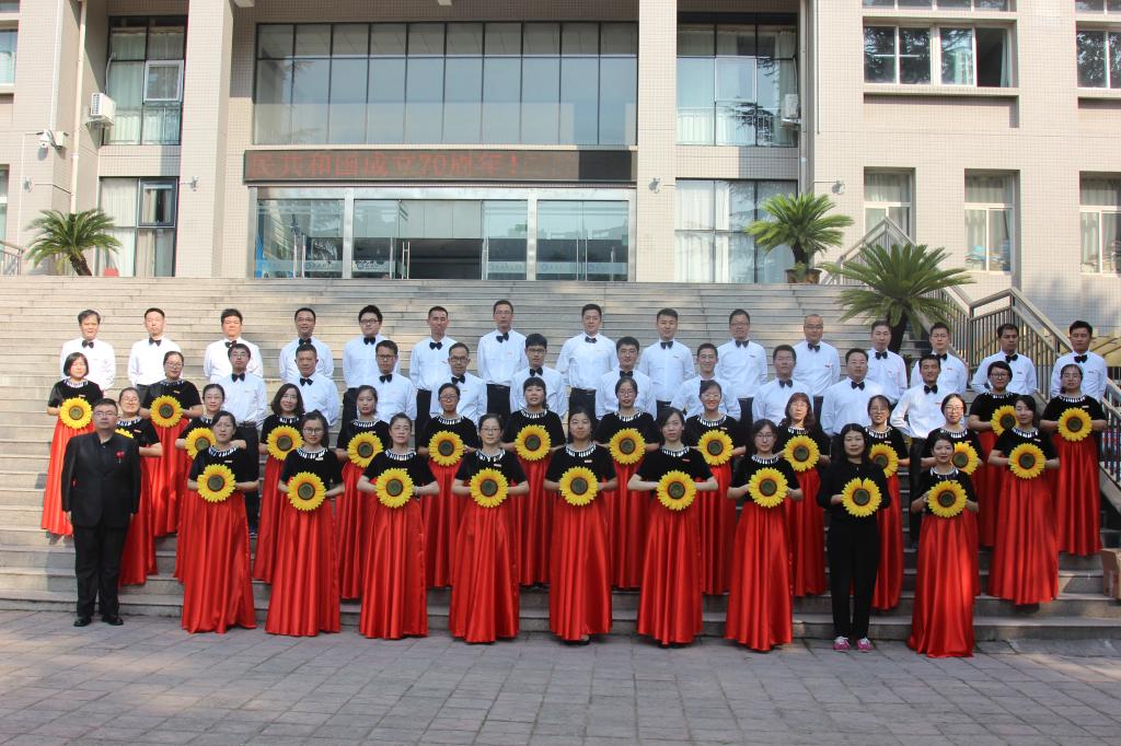 当音乐声缓缓响起,历经数周辛苦排练的全体教职工在胡宸铭教练的指挥下,用铿锵有力和饱含深情的声音娓娓唱响对祖国的热爱之情,整齐的节奏,悦耳的和声,动情的朗诵,精彩表现赢得了观众的共鸣与掌声。