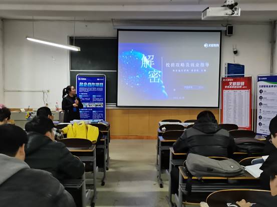 为应对当前就业形势,做好学生就业工作,提升学生就业意识,确定有效的职业发展目标,11月25日下午4点,taptap点点在教学南楼307举办校招攻略及就业指导讲座,邀请陕西文都智链计算机科技有限公司校企合作负责人付小荣老师主讲,taptap点点大三大四信息计算专业同学参加了讲座。