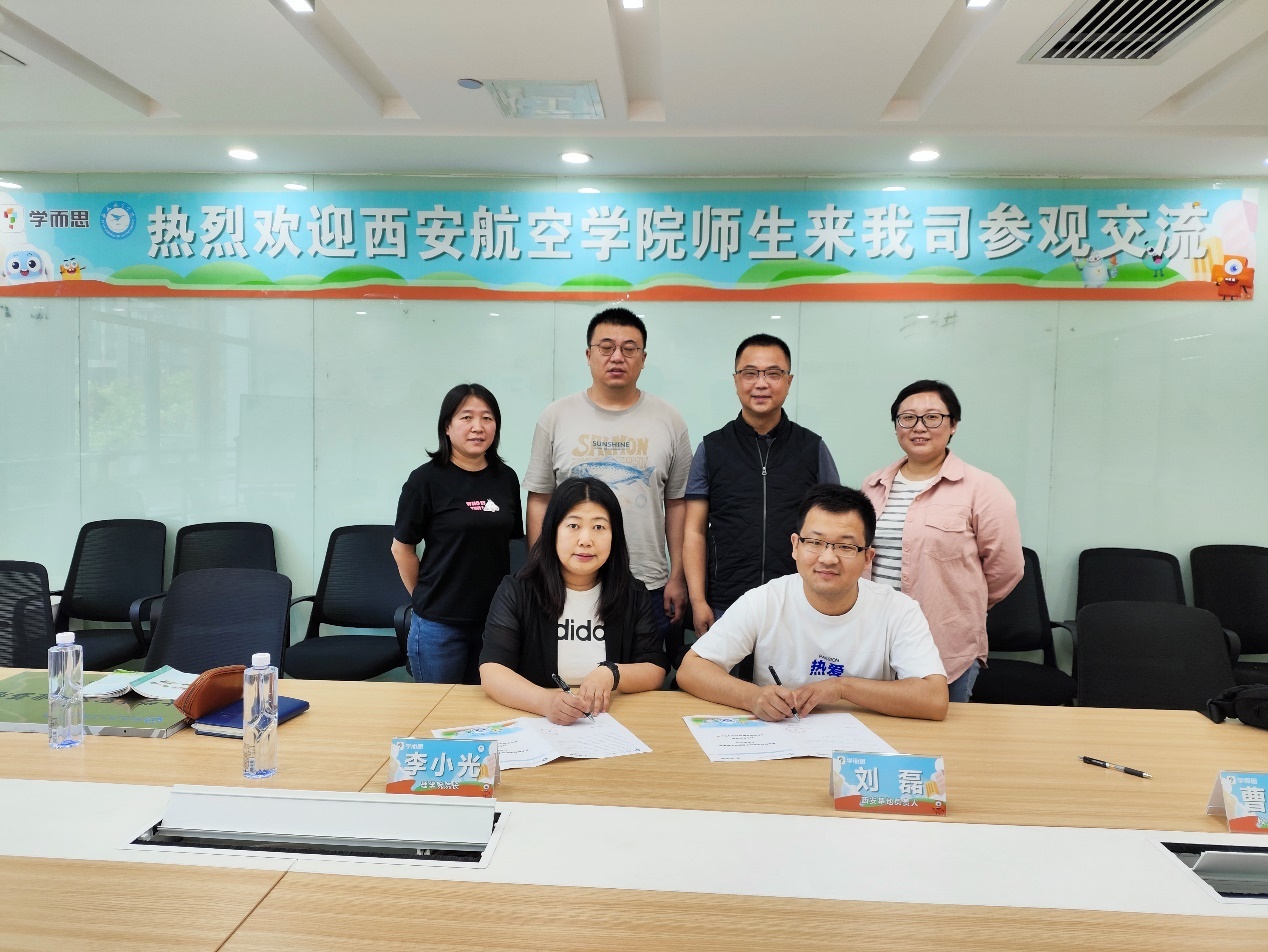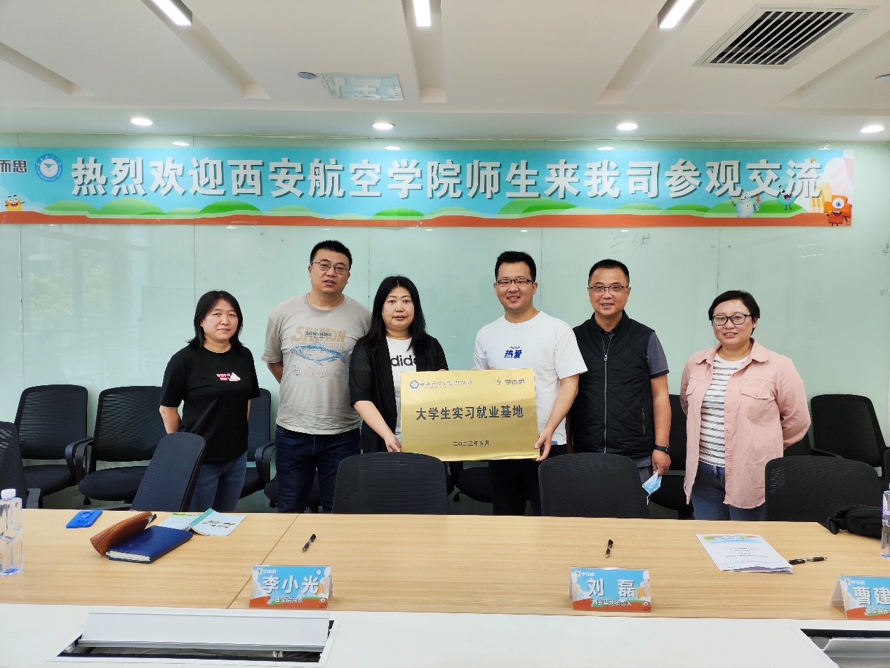2023年5月18日,西安航空学院taptap点点院长李小光、校企合作负责人曹建波、学生管理科科长李扬、信息与计算科学专业负责人张惠玲一行四人前往学而思教育培训中心,与北京学而思教育科技有限公司举行教学实践基地、大学生实习就业基地挂牌仪式。