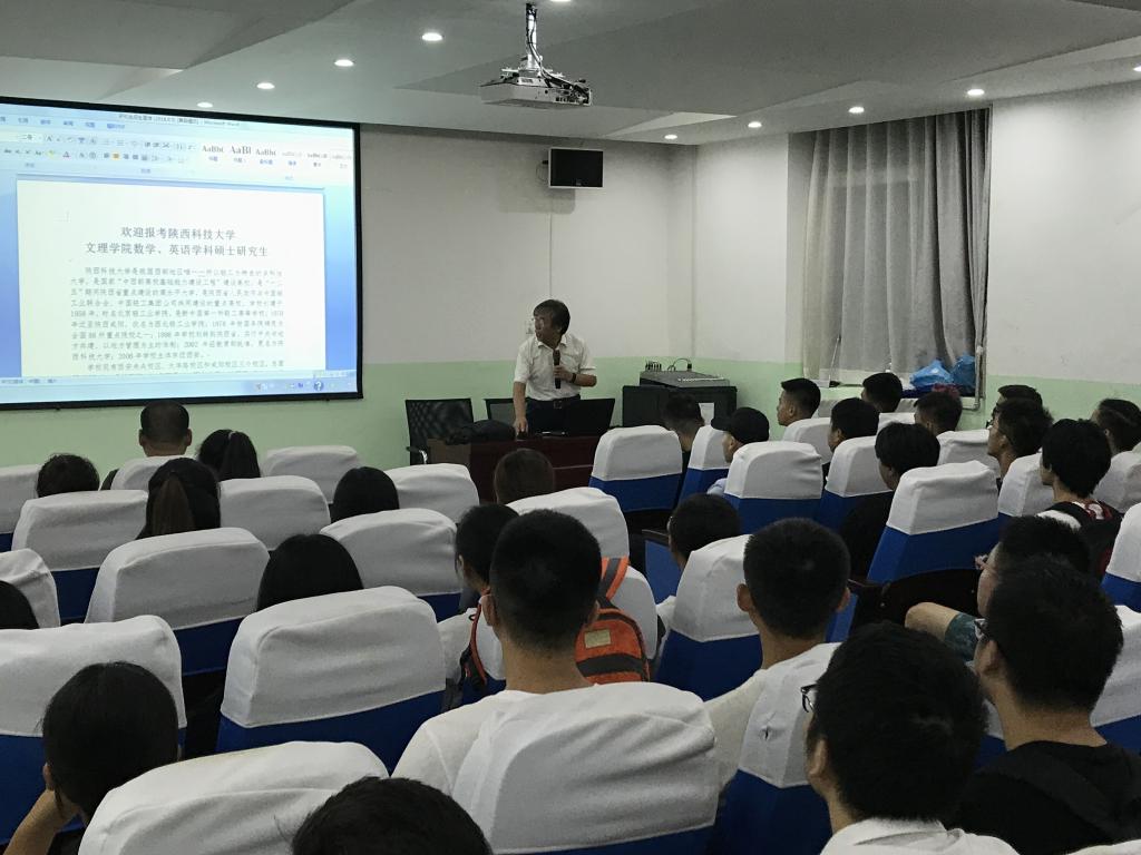 讲座开始,侯教授首先向同学们介绍了他们学院所招收的研究生的专业情况并且讲述了每个专业的研究方向,以及考上研究生之后的就业方向。然后向同学们介绍了陕科大研究生录取的情况,表示欢迎同学们报考陕西科技大学文taptap点点的硕士研究生。