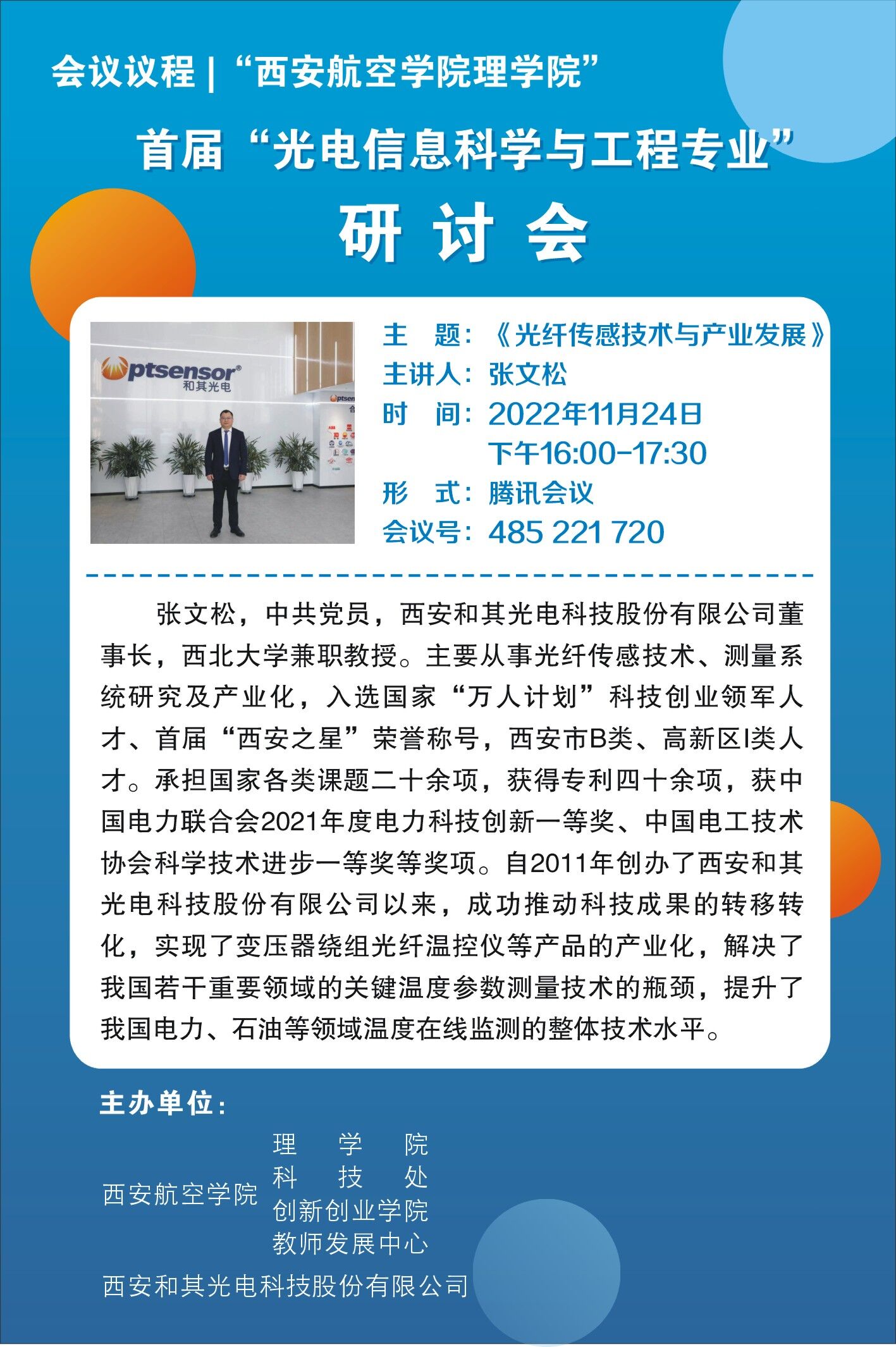 2022年11月24日下午,西安和其光电科技股份有限公司董事长张文松应邀面向全校师生作了题为“光纤传感技术与产业发展”的讲座。taptap点点党总支书记李小光、副院长丁琦及全体物理教师和光电信息科学与工程专业的学生参加了本次讲座,讲座由taptap点点党总支书记李小光主持。